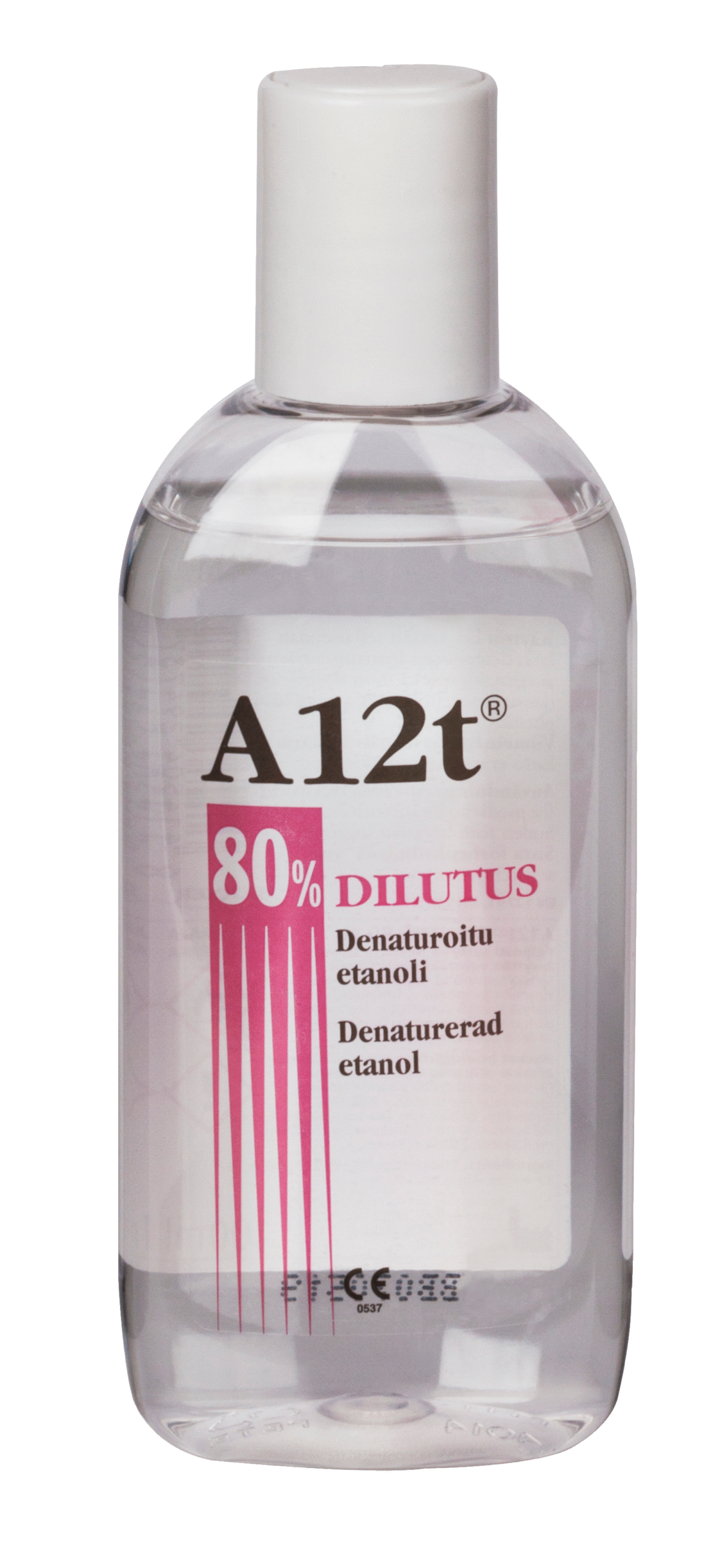 A12T Dilutus 80 % desinfiointiliuos soveltuu terveydenhuollon ei-invasiivisten välineiden, puhtaiden kuivien pintojen ja laitteiden desinfiointiin sekä ihon desinfektioon ennen injektion antoa, näytteenottoa tai muuta invasiivista toimenpidettä.