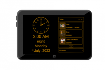 CARY Base näyttää päivämäärän ja kellon- sekä vuorokaudenajan ja päivän tapahtumat etenevänä listauksena. Näkymä voidaan kustomoida käyttäjää parhaiten palvelevaksi. Näyttöä painaessa tiedot luetaan ääneen.