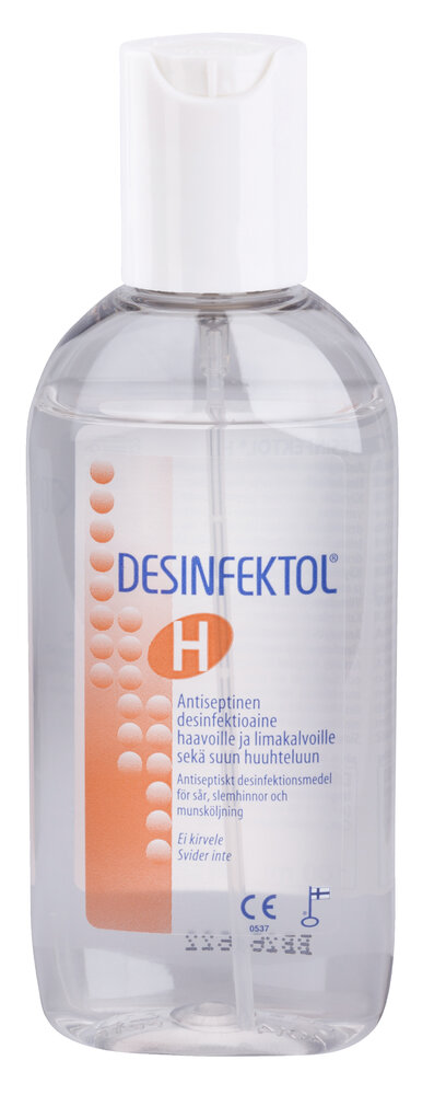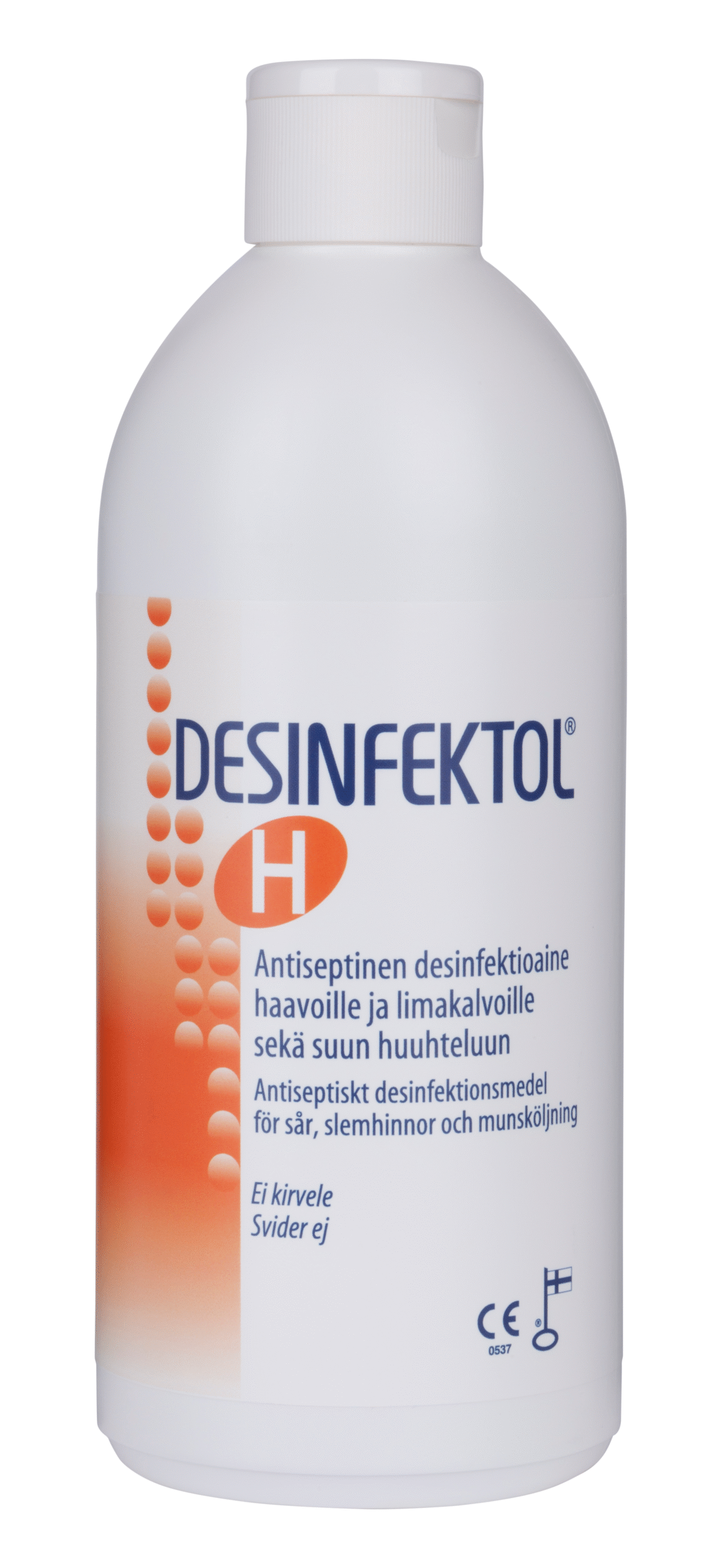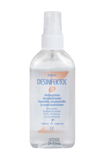 Puhtaasta kotimaisesta etanolista ja suomalaisella työllä valmistettu Desinfektol H on antiseptinen etanolipohjainen desinfektioaine, joka soveltuu mm. haavojen ja ihovammojen desinfiointiin. Lähes tuoksuton Desinfektol H ei kirvele, sisältää ksylitolia ja soveltuu myös suun huuhteluun.