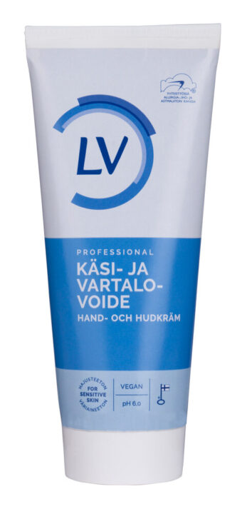 Hoitavaa ja kosteuttavaa LV Käsi- ja vartalovoidetta voi käyttää käsien lisäksi myös koko vartalon ihon hoitoon. Voide on hyvin imeytyvä ja levittyy hyvin jättämättä ihoa tahmeaksi.
