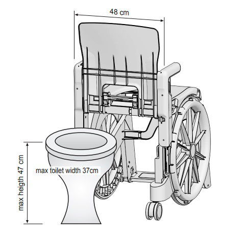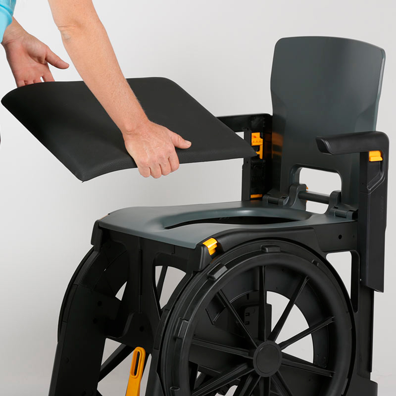 Tuolin suunnittelussa on otettu huomioon käytännöllisyys, toimivuus ja helppo huollettavuus. Materiaalit ovat vettä hylkiviä, helposti puhdistettavia ja kuivattavia. Istuinmukavuutta voidaan lisätä erillisellä pehmustetulla istuinlevyllä, joka peittää istuimen aukon.