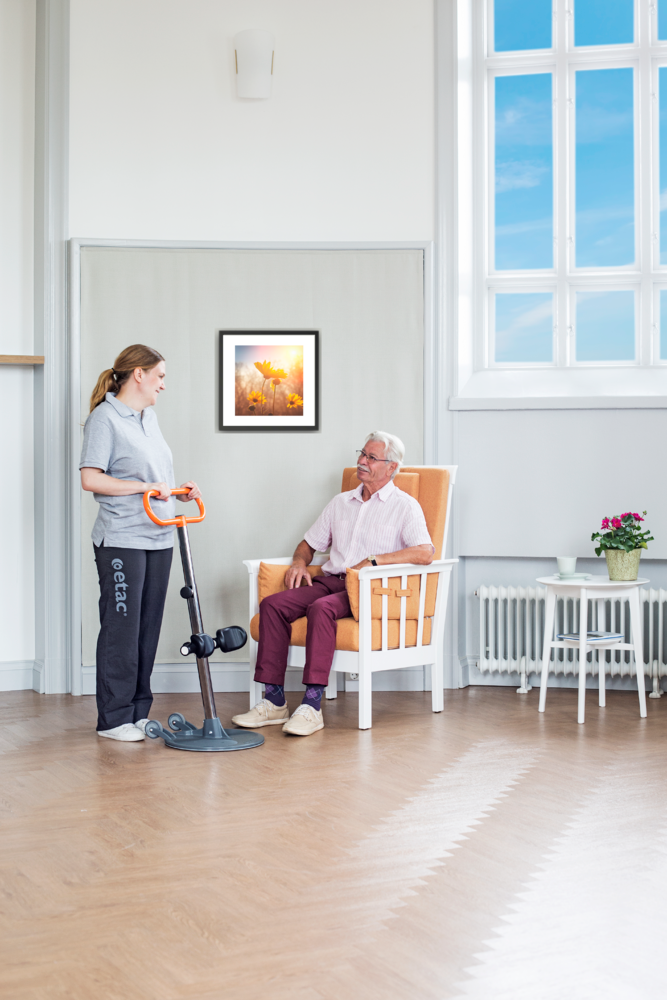 Turner Pro on kädensijalla varustettu kääntöalusta joka helpottaa siirtymistä istuinpaikasta toiseen. Hoitohenkilö säilyttää ergonomisen työasennon samalla kun käyttäjä aktivoituu ja nousee seisomaan. Turner on pienikokoinen ja helppo siirtää sopivaan kohtaan. Alustan korkeus on vain 13 mm joten käyttäjän on helppo asettaa jalkansa sen päälle. Luistamaton pinta antaa lisäturvaa. Vain polvituen ja kädensijan korkeus on säädettävä. Kun säädöt on tehty siirtyminen on turvallista. Avustaja ja avustettava voivat pitää koko ajan yllä katsekontaktia ja vuorovaikutusta.