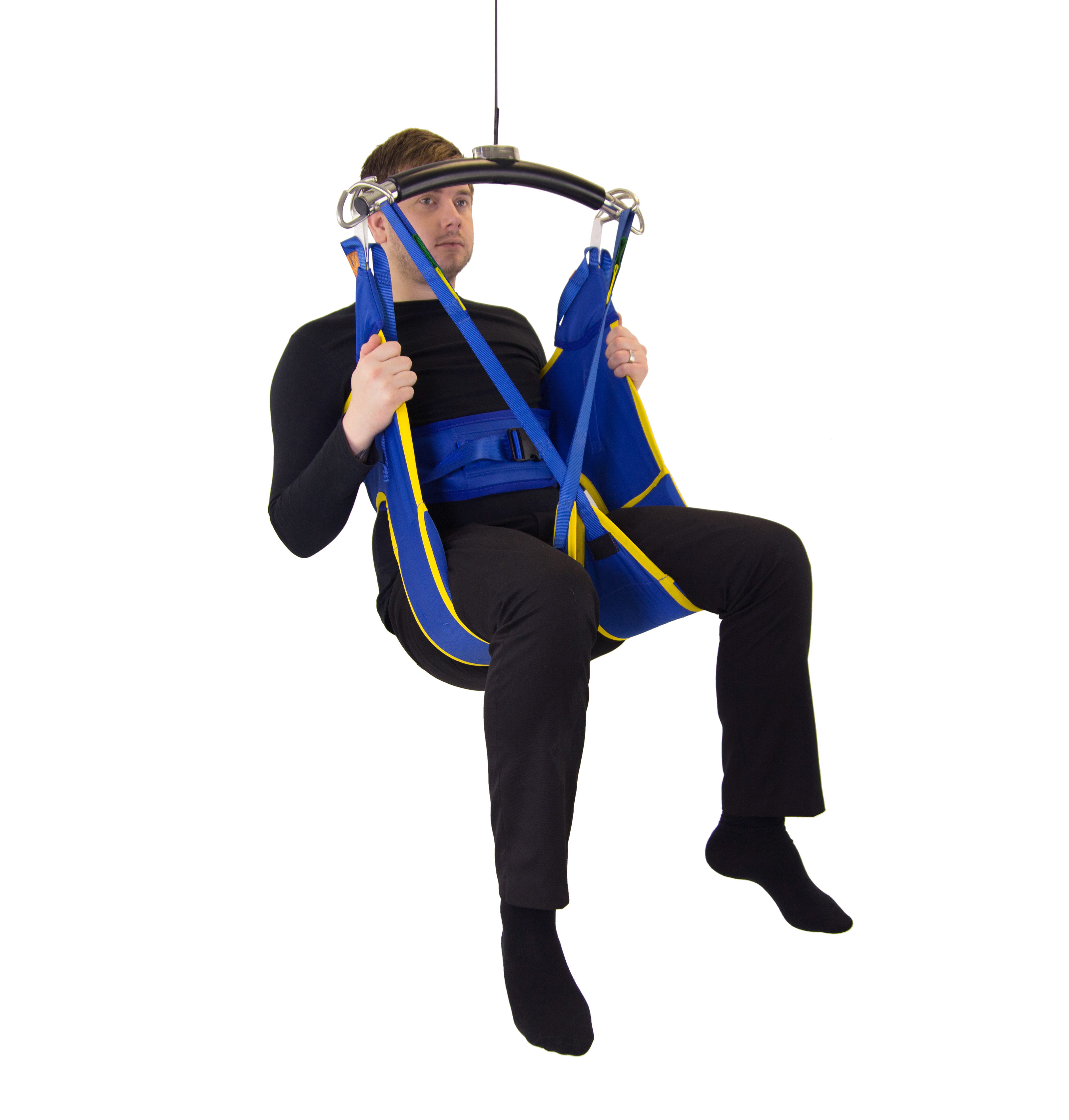 Nostoliinan avoin muotoilu vähentää kainaloiden alle kohdistuvaa painetta. Pehmustetut jalkaosat lisäävät käyttömukavuutta sekä tukevat nostettavan jalkoja. Jalkaosien ristikkäislenkit pitävät jalat halutussa asennossa.